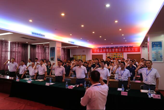 與會(huì)人員共同宣誓將精益生產(chǎn)項(xiàng)目持之以恒推進(jìn)下去。標(biāo)志著公司精益生產(chǎn)項(xiàng)目正式啟航。