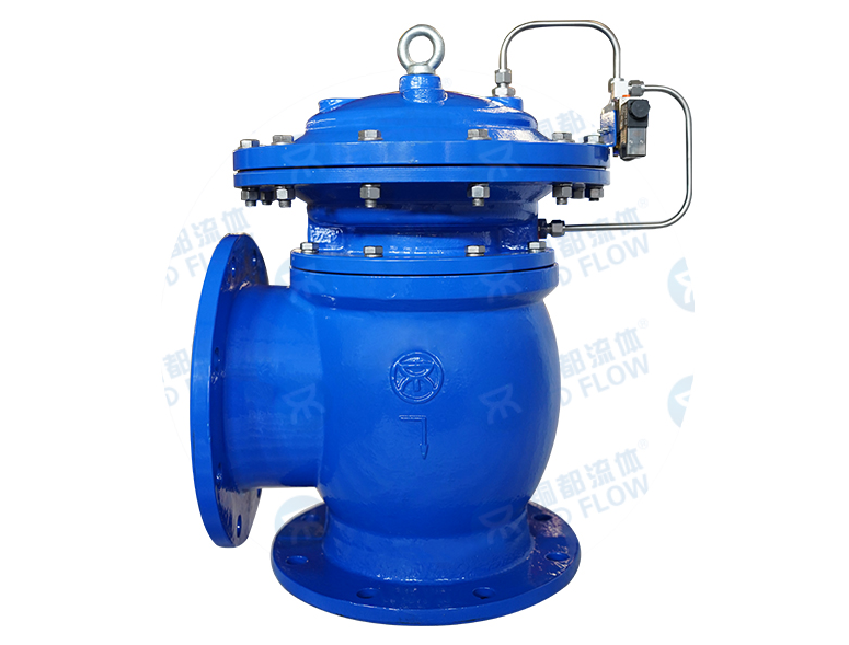 JM744X、JM644X膜片式快開排泥閥,是一種由液動或氣動源作執(zhí)行機(jī)構(gòu)的角型截斷類閥門。通常成排安裝在沉淀池底部外側(cè)壁,用以排除池底沉淀的泥砂和污物。該閥由膜片將閥門分為兩個腔室,接通液或氣動力源,采用二位四通或二位五通電磁換向閥控制,實現(xiàn)快速排泥。