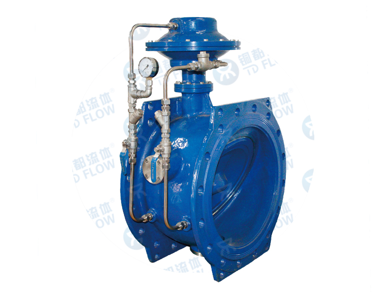 節(jié)能型泵控閥的動(dòng)作是通過一個(gè)雙室膜片控制器或活塞缸,利用液壓原理來控制,膜片控制器(活塞缸)上腔與閥的出水口相通,下腔與閥的進(jìn)水口相通。