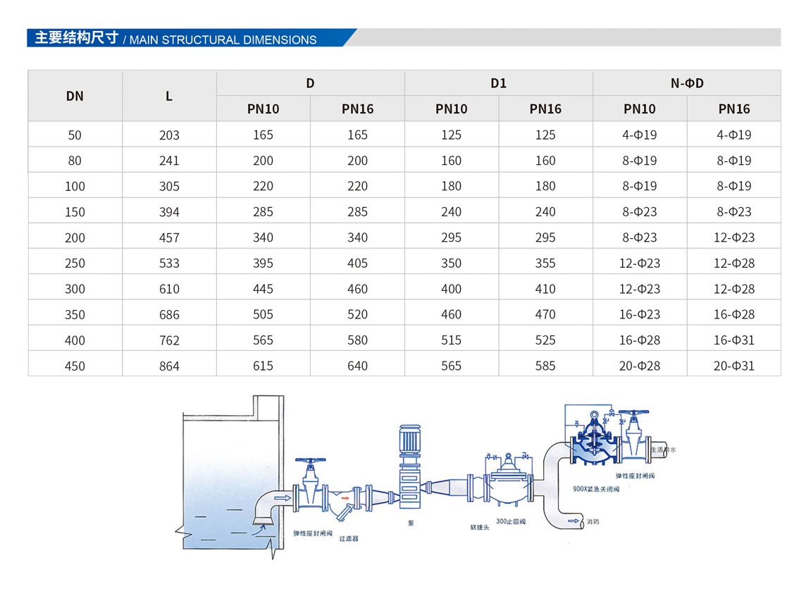 900X緊急關(guān)閉閥,是一種用于消防用水與生活用水并聯(lián)的供水系統(tǒng)中,用來調(diào)配供水方向的閥門。當(dāng)火災(zāi)發(fā)生時(shí),消防急需大量用水,900X緊急關(guān)閉閥立即切斷生活用水,確保足夠的消防用水:當(dāng)消防停止用水壓力減小時(shí),閥門自動(dòng)打開,呈常開狀態(tài),恢復(fù)生活供水。該閥使系統(tǒng)無須另設(shè)專門的消防單獨(dú)供水管網(wǎng),大大地節(jié)約了建設(shè)成本和用水量。閥門控制靈敏度高,安全可靠,調(diào)試簡便,使用壽命長。