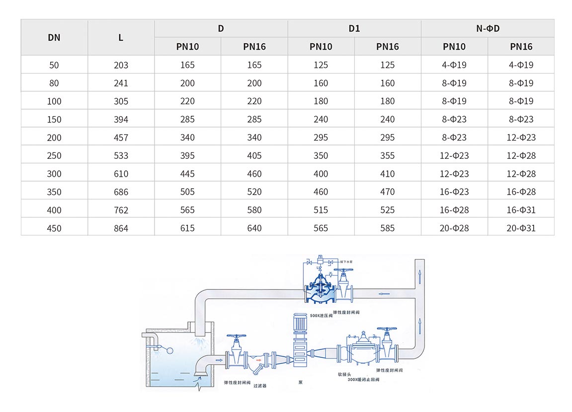 500X泄壓/持壓閥主要用于消防或其他供水系統(tǒng)中,以防止系統(tǒng)超壓或維持消防供水系統(tǒng)的壓力。消防泵關閉后還可以減小水錘的沖擊。也用于大型供水系統(tǒng)的水錘消除裝置,并且閥門控制系統(tǒng)的進口處裝有一個自清潔濾網(wǎng),利用流體特性,使比重較大、直徑較大的懸浮顆粒不會進入控制系統(tǒng),確保系統(tǒng)循環(huán)暢通無阻,使閥門能安全可靠地運行。系統(tǒng)動作平穩(wěn)、強度高、使用壽命長適用于DN600口徑以下的管道。